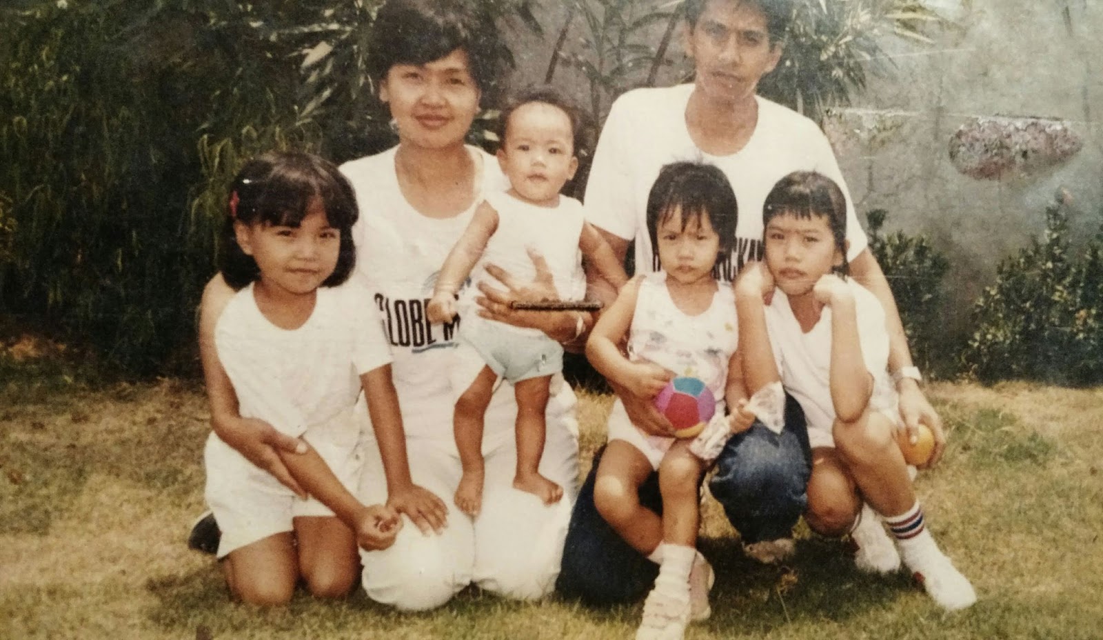 The family continued to grow as love grows a family. This was taken after a church activity. Two kids were added here. Mommy was holding our bunso (youngest) named Nyla Irmamina who was born on October 23, 1988 and then the fourth child Valerie Jovy sitting on Papa's lap was born on February 26, 1987. By the way, I was 7 years old in this picture while Ate Ivy was 9. Left to right: Me, Mommy, Nyla, Valerie, Papa and Ivory.